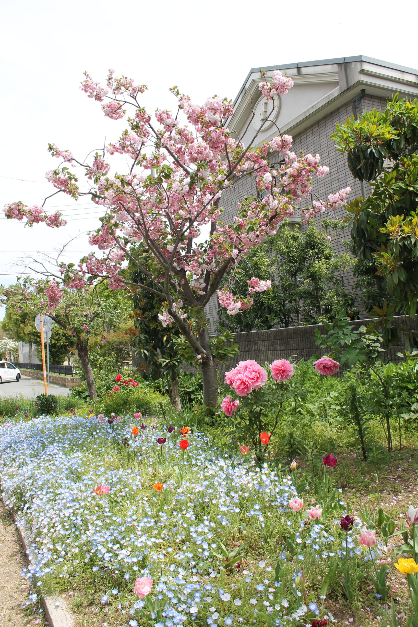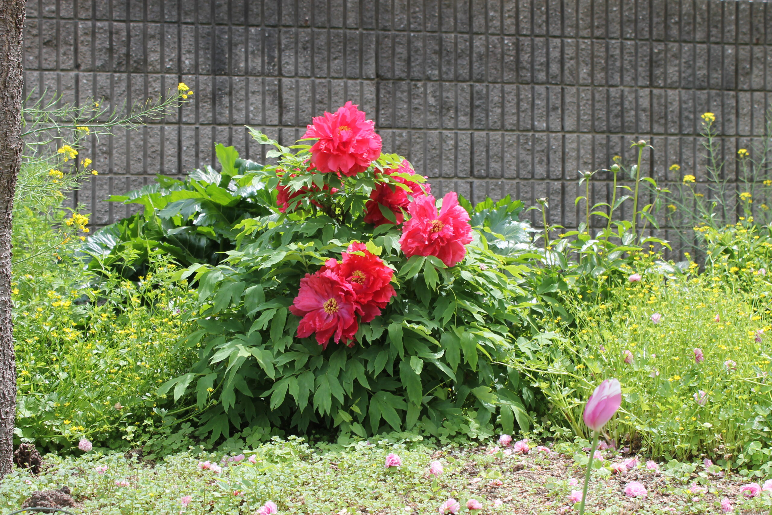2026.4.21、人の顔より大きそうな特大のボタンの花が咲いています。八重桜も満開!
