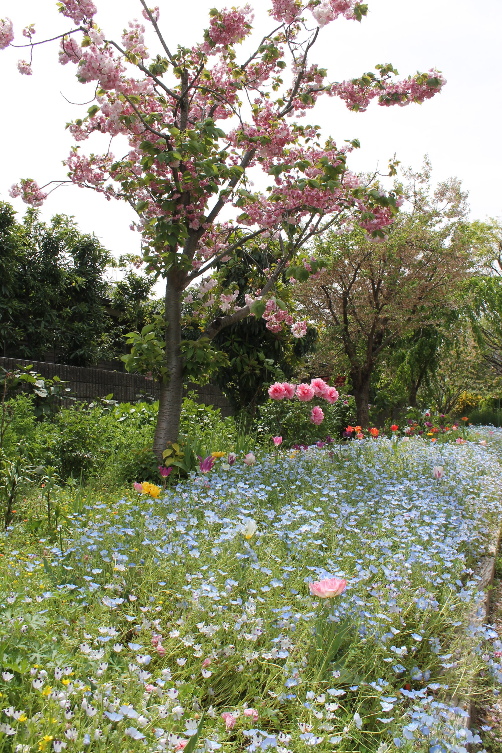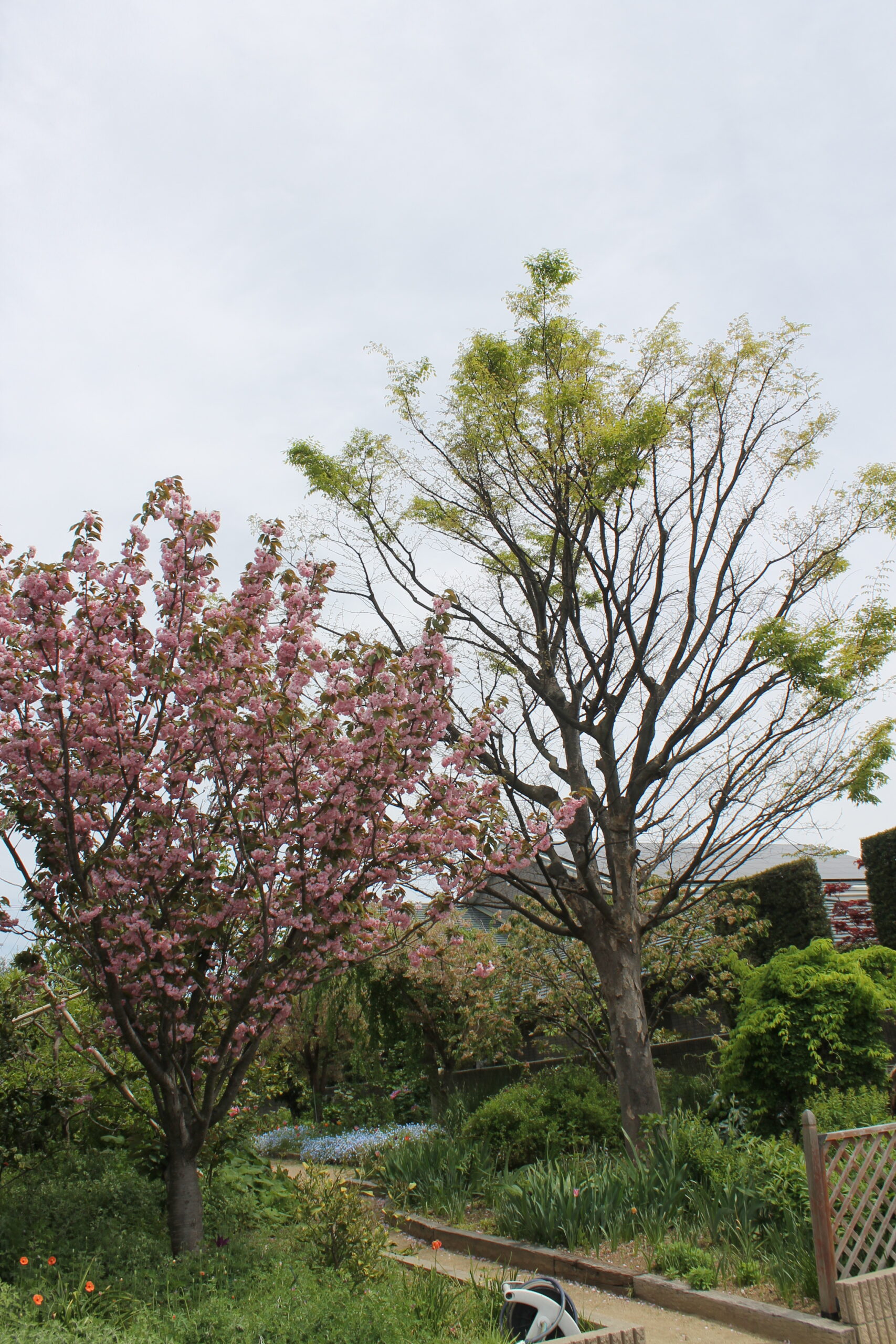 ケヤキの木をシンボルとして、季節の花々が咲き誇ります。さくらんぼ、いちじく、ぐみ、ぶどう、柿、あけび、桑など、果実を実らせる木々も枝を広げています。収穫の時期が待ち遠しいです。